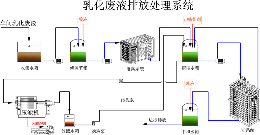 隨著機械制造業的迅速發展,廢乳化液的排放量也逐年增加,排放的廢乳化液如果不能夠妥善處理,將會對環境造成嚴重的污染,因此廢乳化液的處理是一個亟待解決的重大環境問題。