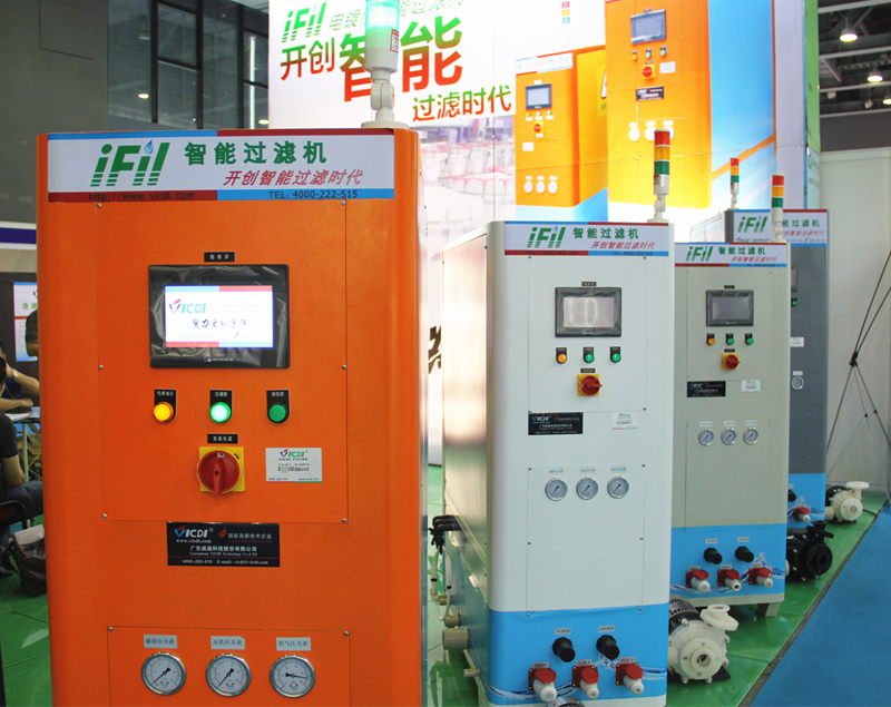 對于新產品智能過濾機的直觀過濾效果,展會現場反應熱烈,觀展人員紛紛前來咨詢現場技術人員或到前臺索取智能過濾機的宣傳畫冊。而觀展人員最關心及反應最多的問題就是該產品能否過濾其想要過濾的液體,目前,威迪研發出來的智能過濾機只針對電鍍液過濾領域,更多的應用領域威迪會盡快補充。其他非油性且雜質顆粒直徑大于0.1μm的液體一般也可使用本產品去除雜質,為確定實際能否應用,歡迎廣大客戶致電威迪按人工提示寄送需要過濾的樣品進行免費測試。