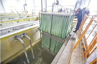 “除了優良的性能,膜工藝還有一大優點,就是占地省,特別適合用地緊張的污水處理廠提標改造。”市供排水集團建設分公司副總經理陳建平以江東北區污水處理廠5萬噸/日處理規模的改造工程舉例,目前MBR膜池及其附屬設施占地僅0.56公頃,改造在不新增用地、不停產的情況下開展。但如果采用傳統AAO和深度處理工藝,需比MBR工藝膜池大8倍的面積用地。