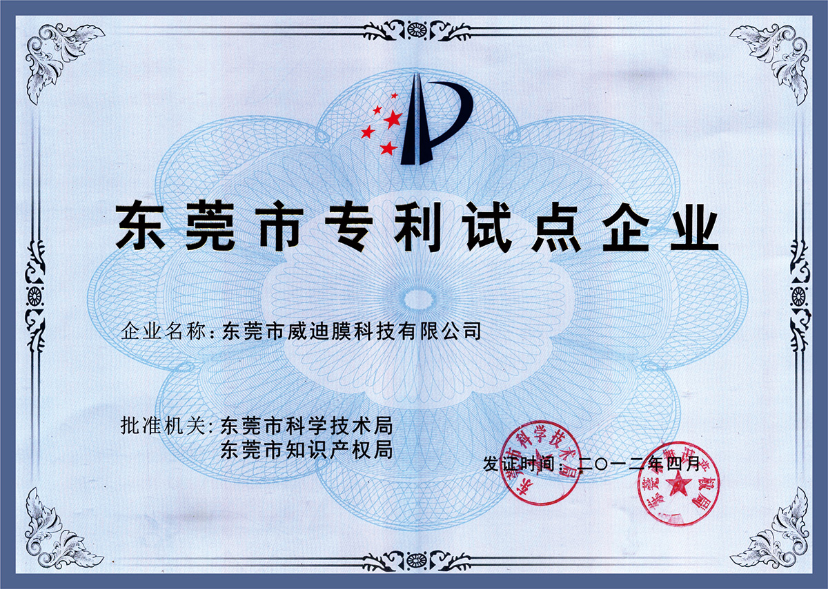 東莞市專利試點證書
