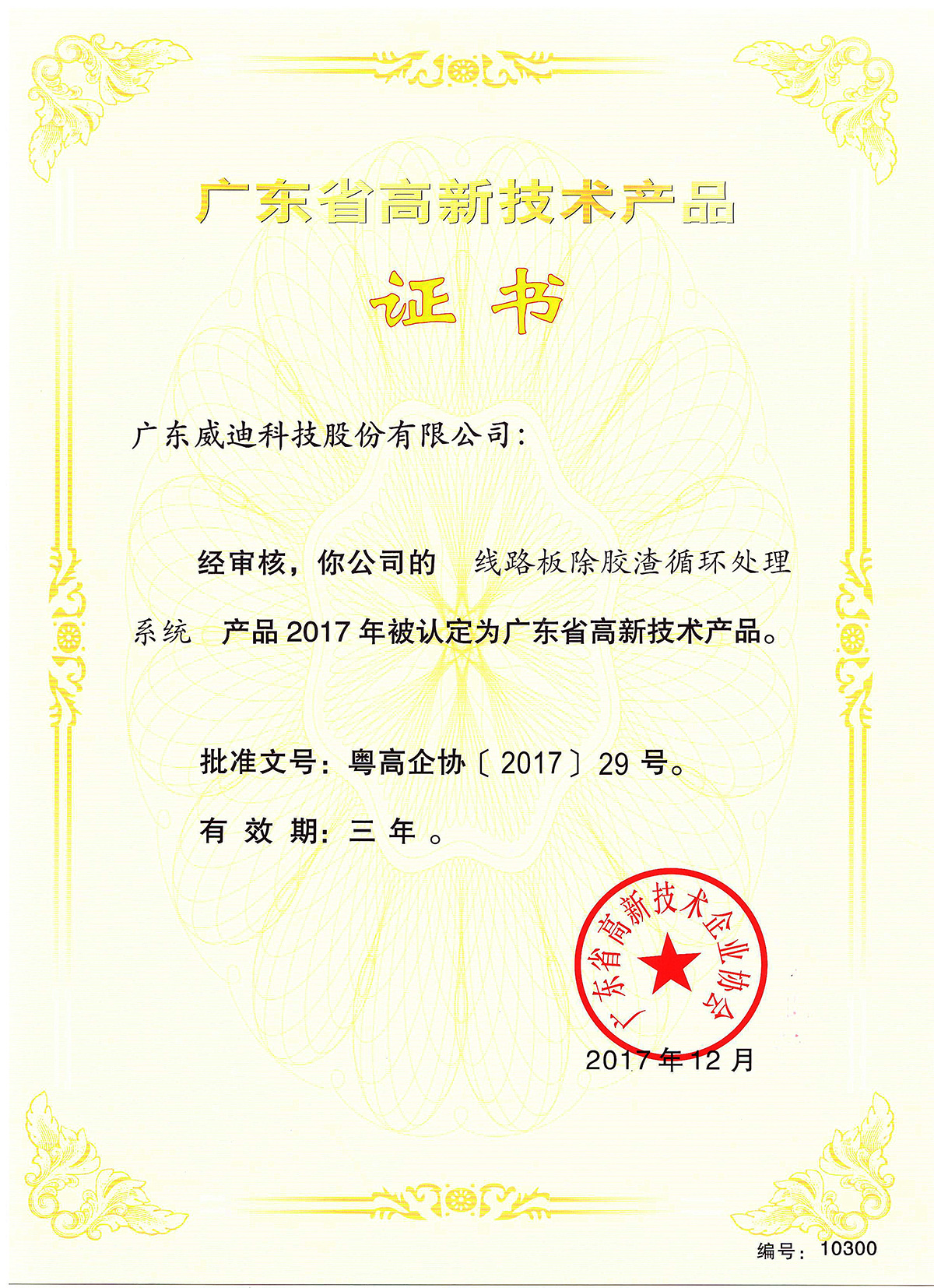 2017年廣東省高新技術產品-線路板除膠渣循環處理系統