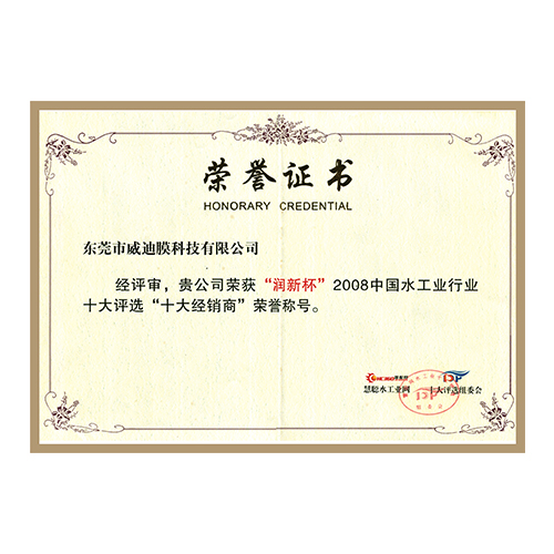十大經(jīng)銷商榮譽證書