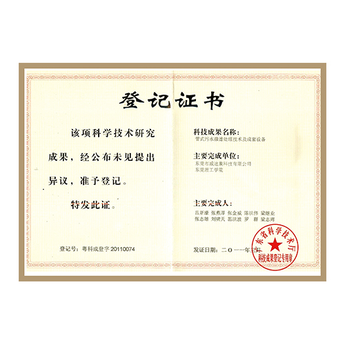 科技成果登記證書