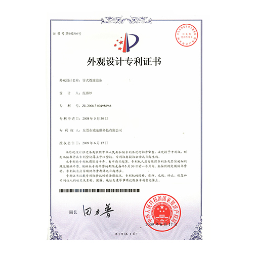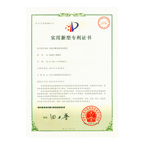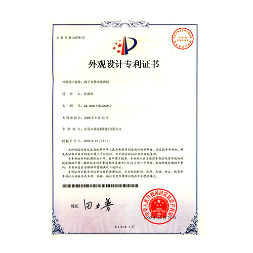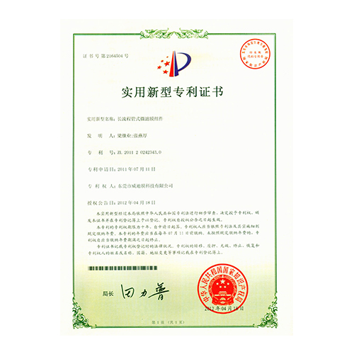 外觀型專利證書管式微濾設備